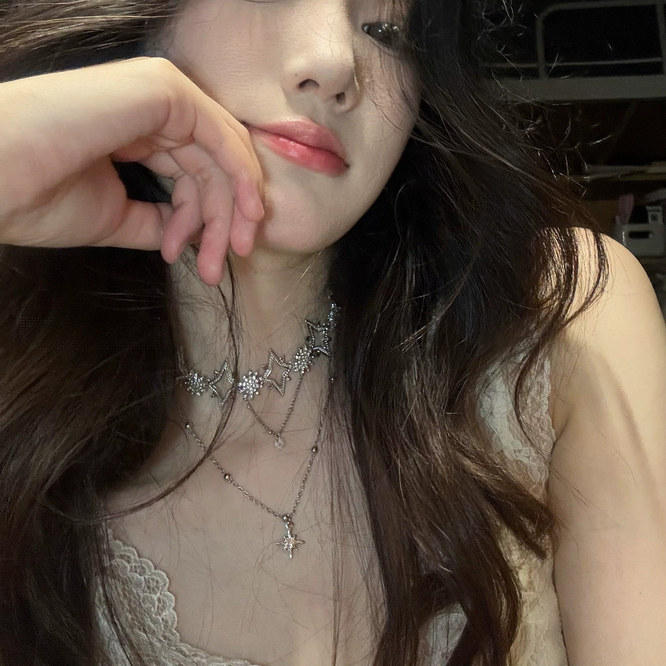 Star Zircon Double Layer Pendant Necklace