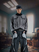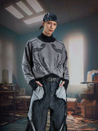 Futuristic Turtleneck Knit Sweater with Ninja Sleeve Design