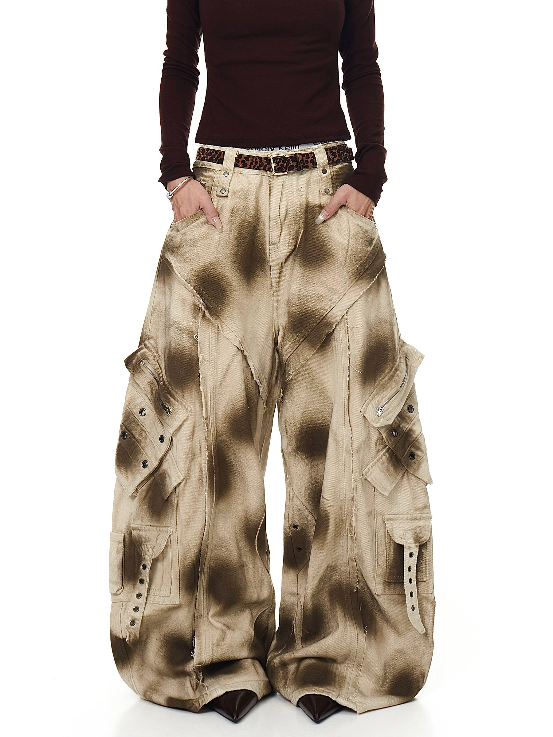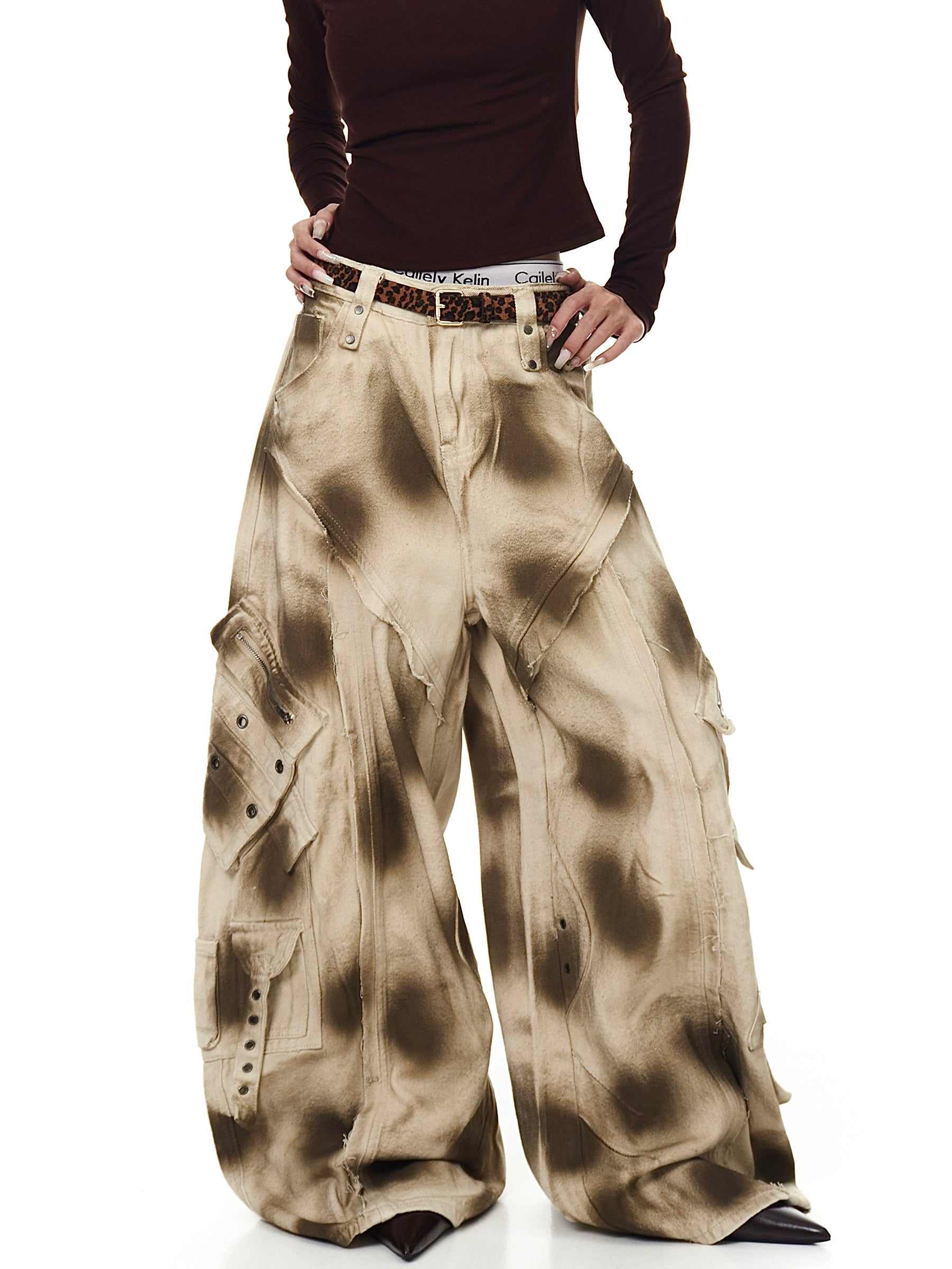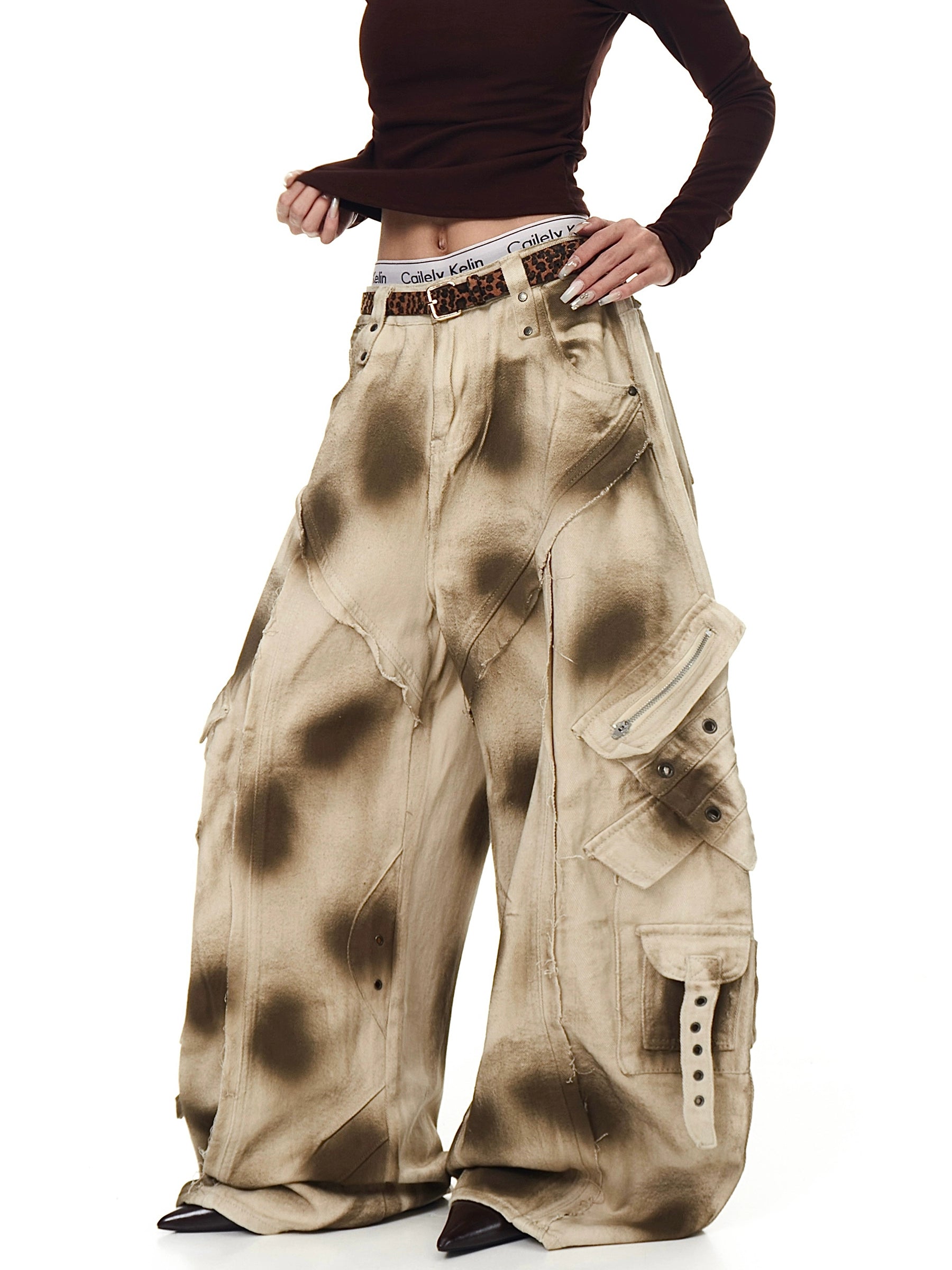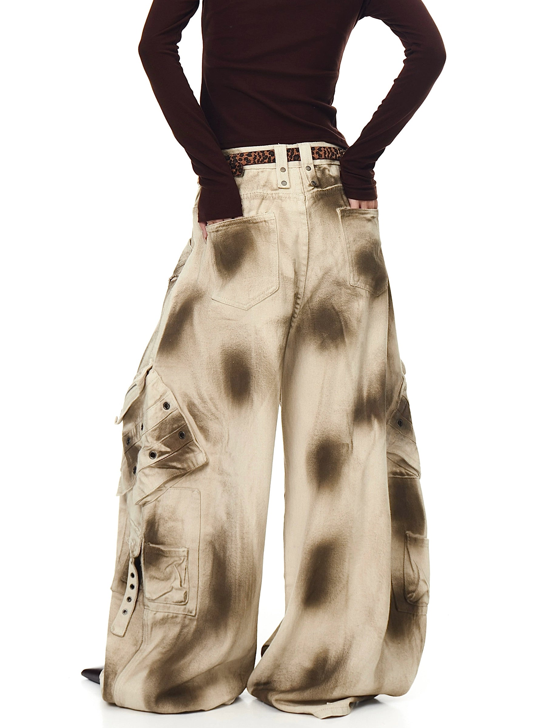 High Street Distressed Dirty Wash Cargo Pants