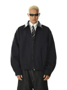 Minimalist Leather Collar Jacket with Relaxed Streetwear Design