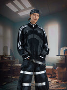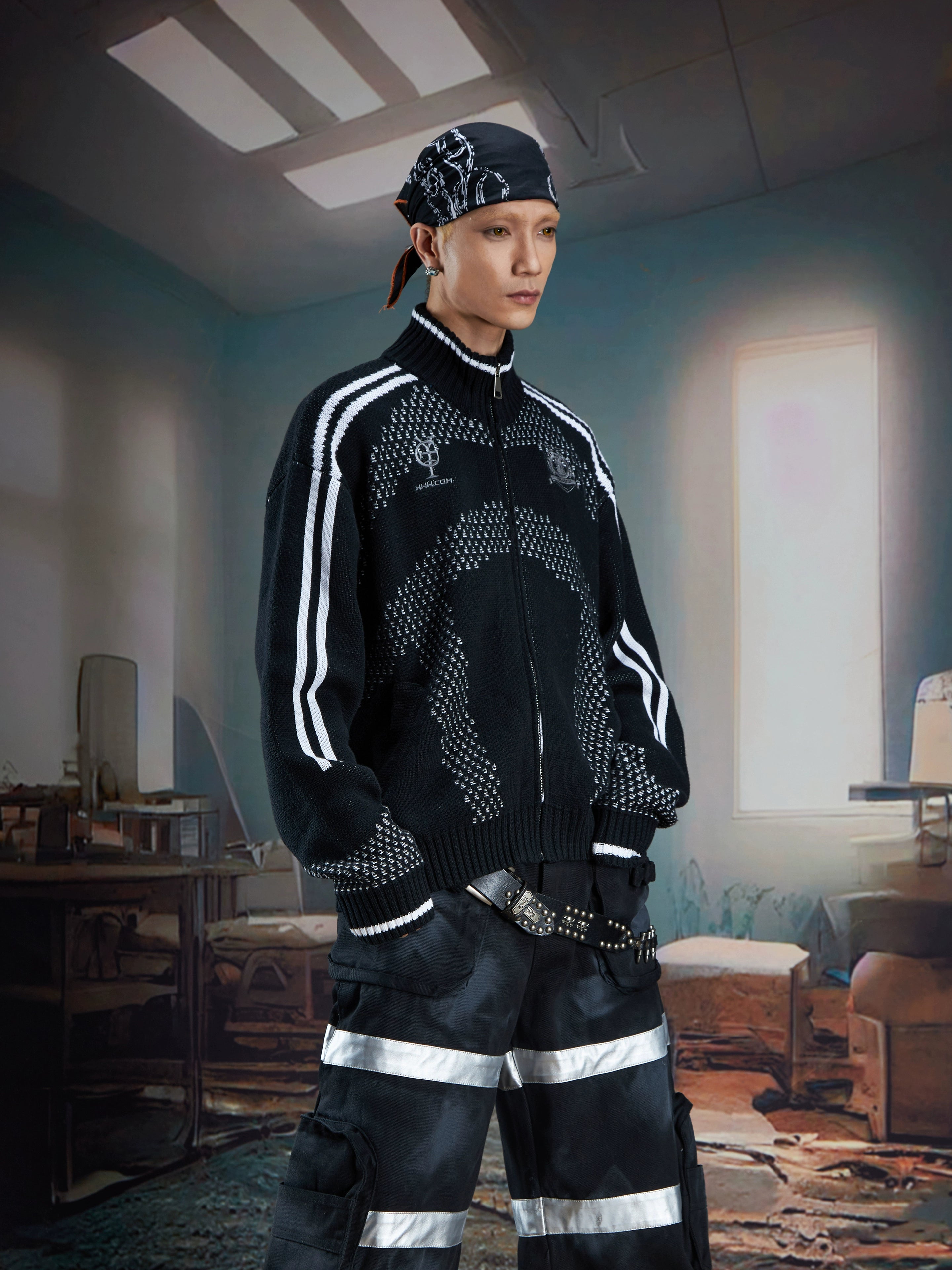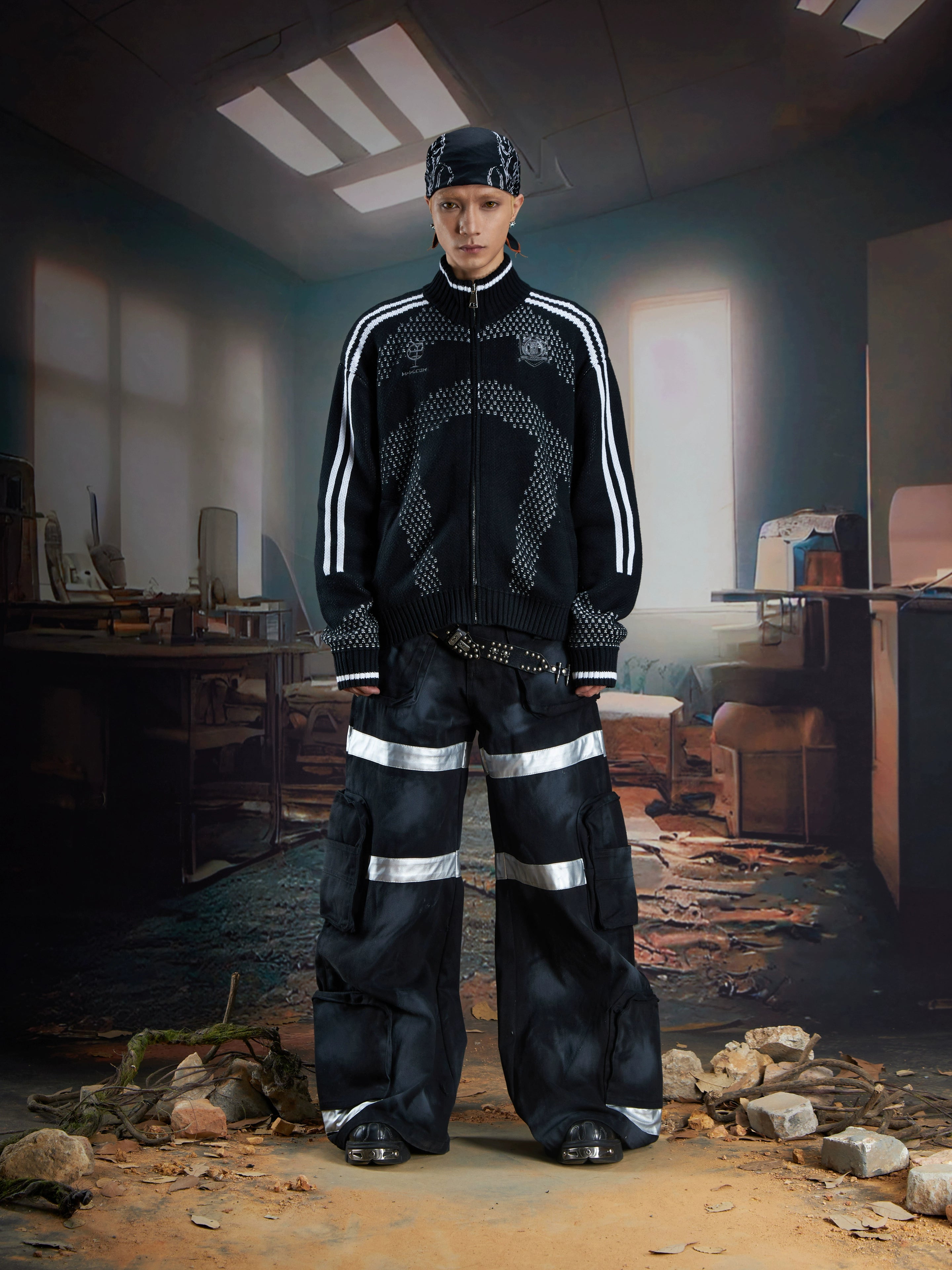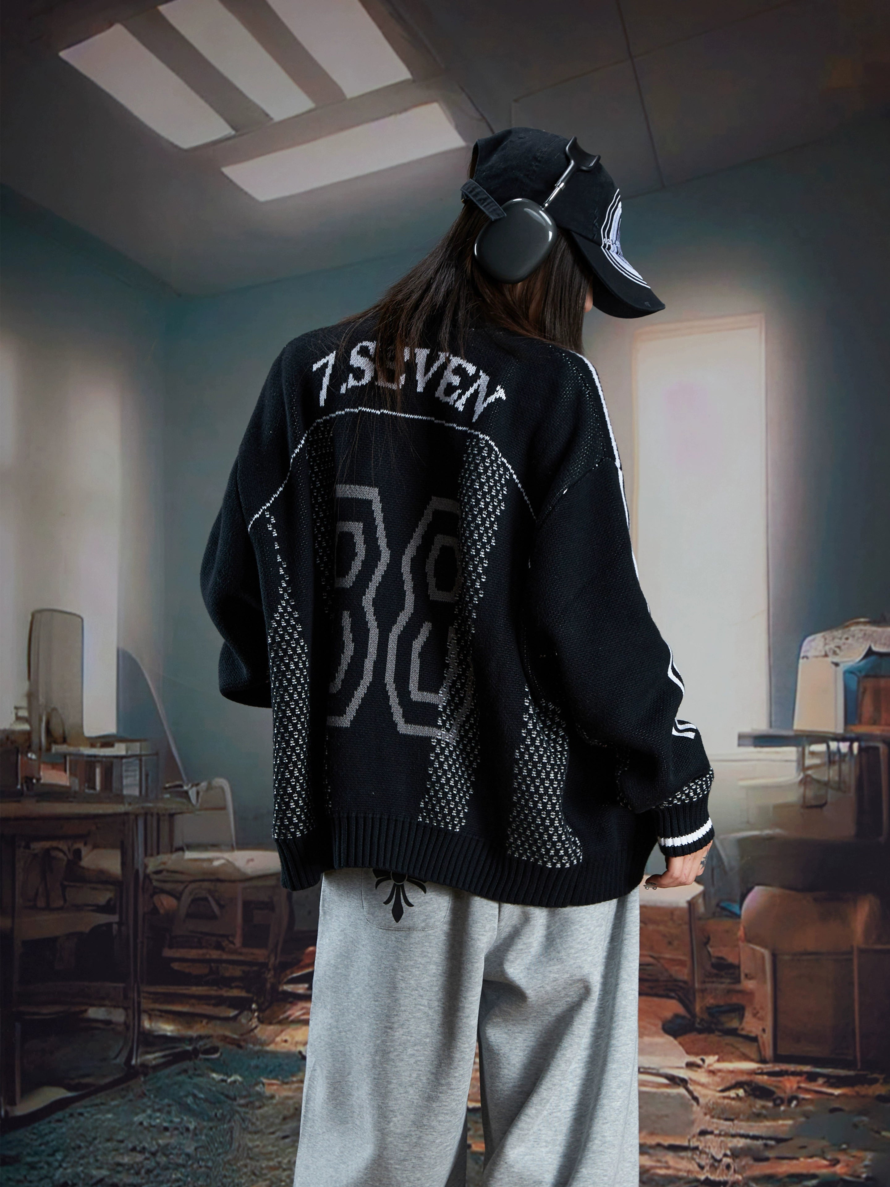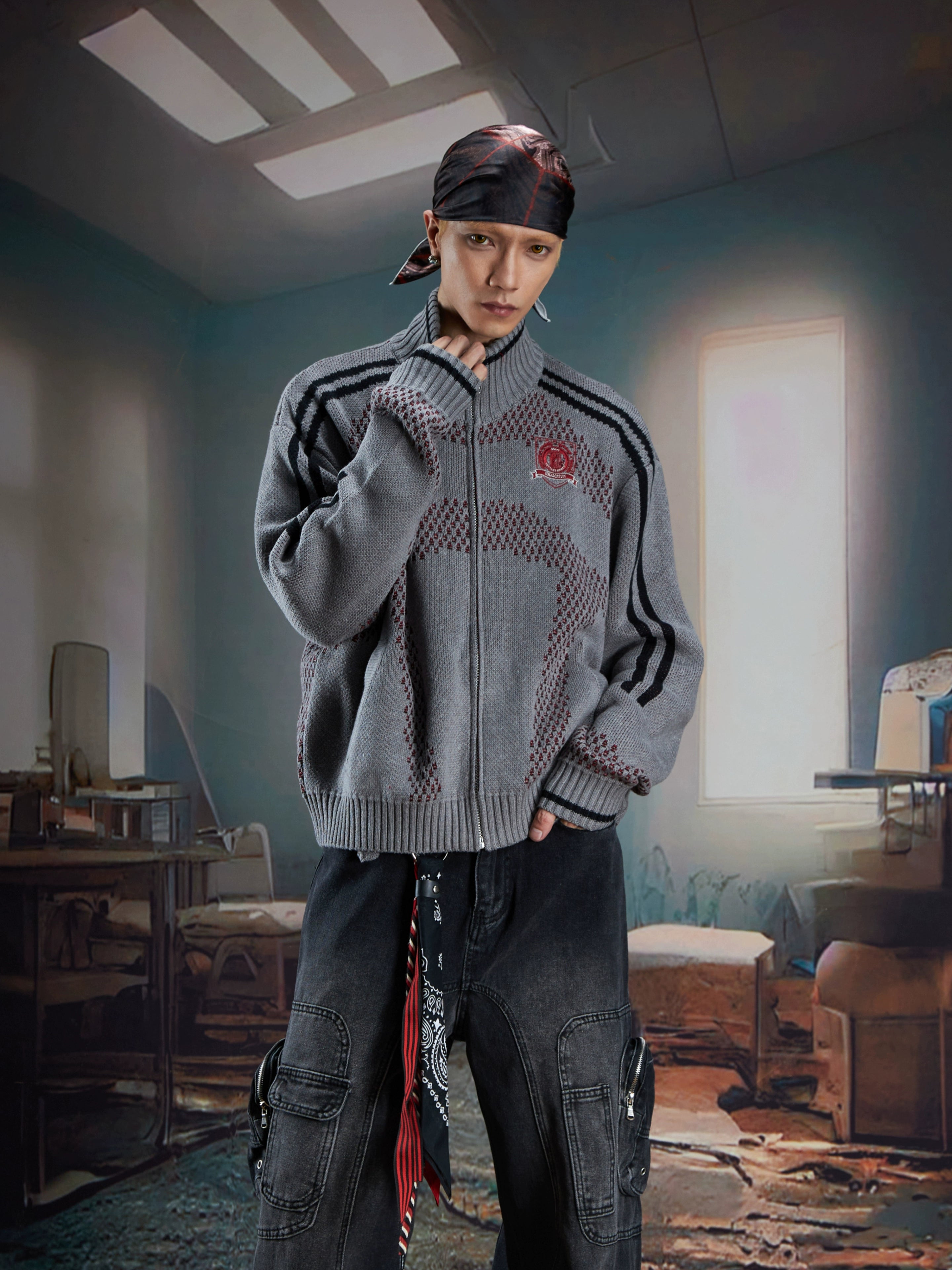 Retro Sporty Colorblock Knit Zip-Up Cardigan Sweater