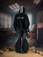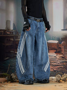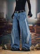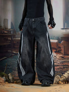 Three-Stripe Deconstructed Wide-Leg Denim Streetwear Pants