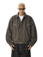 Vintage Leather Utility Jacket with Multi-Pocket Streetwear Style