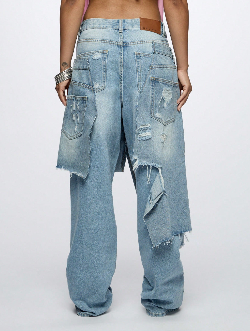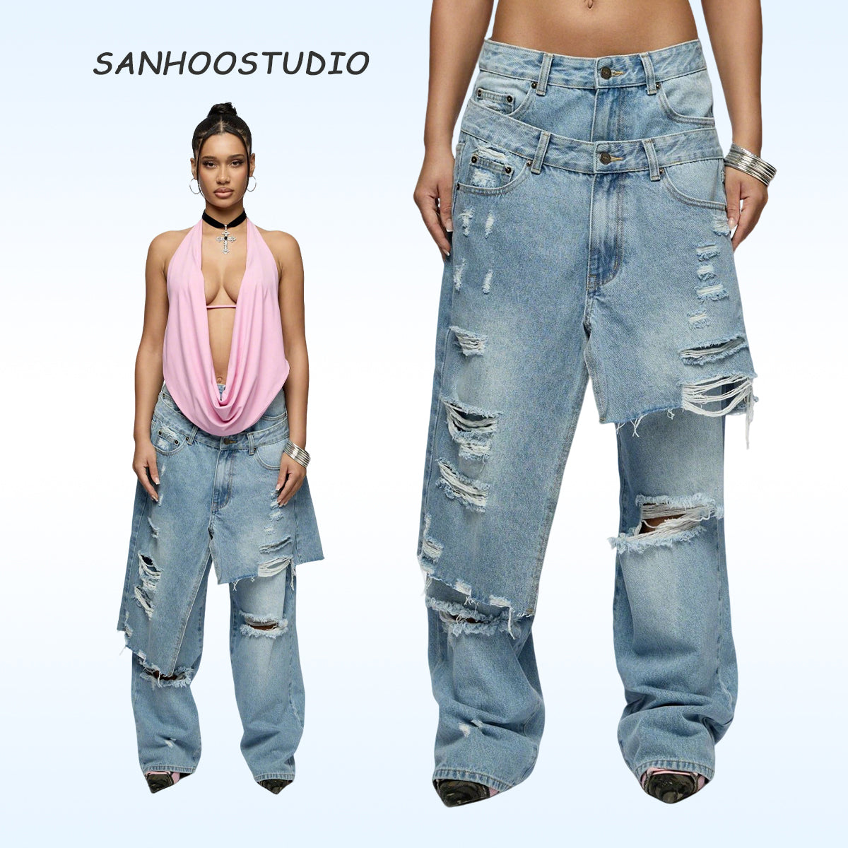 【25s Sep.】Loose Hip-hop Ripped High Street Jeans