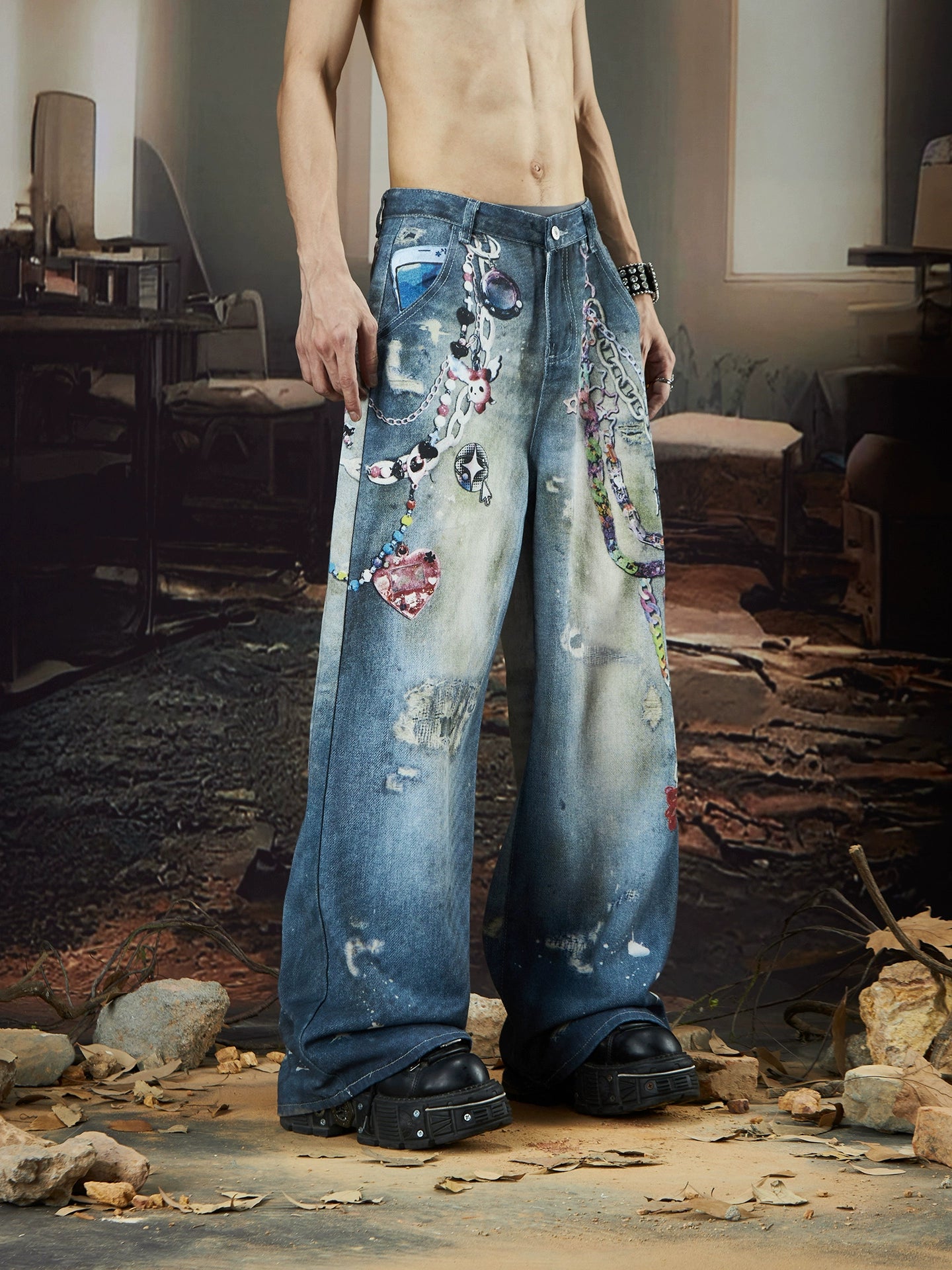 【25s Sep.】Multicolor Chain Digital Print Washed Jeans