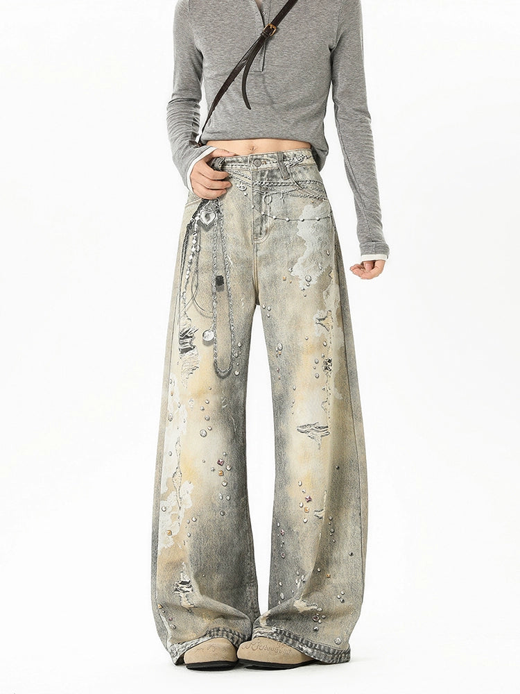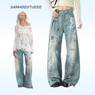 【25s Sep.】Vintage 3D Lace Printed Ripped Denim Pants