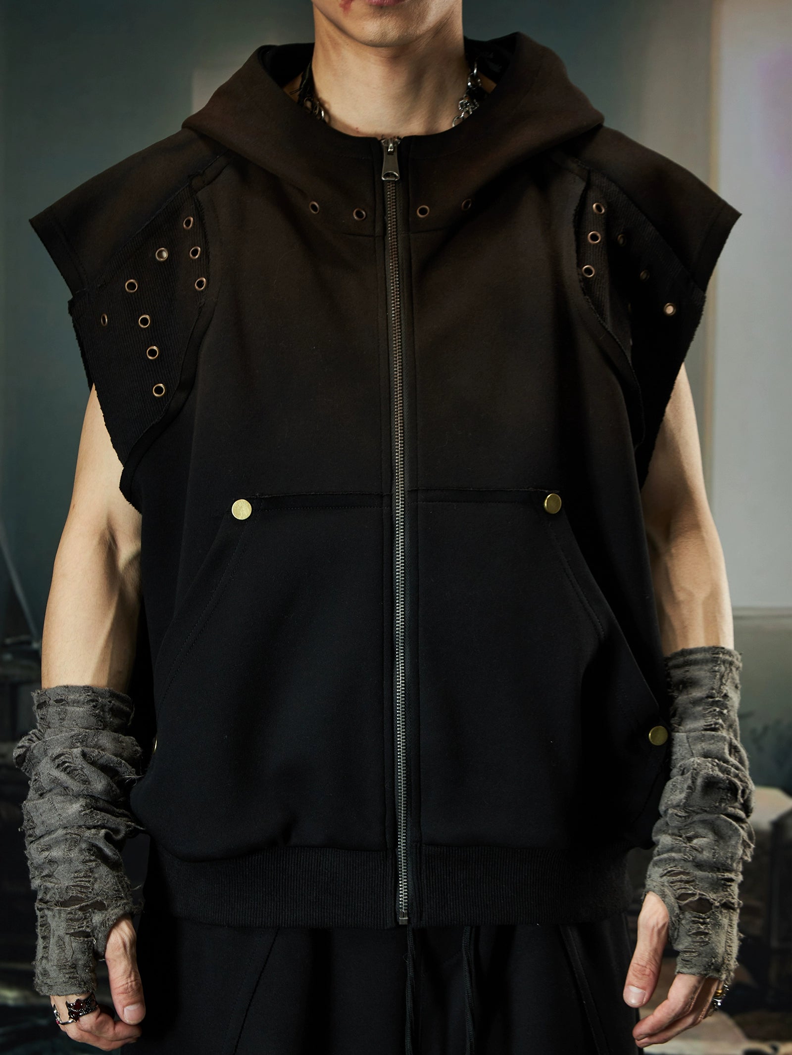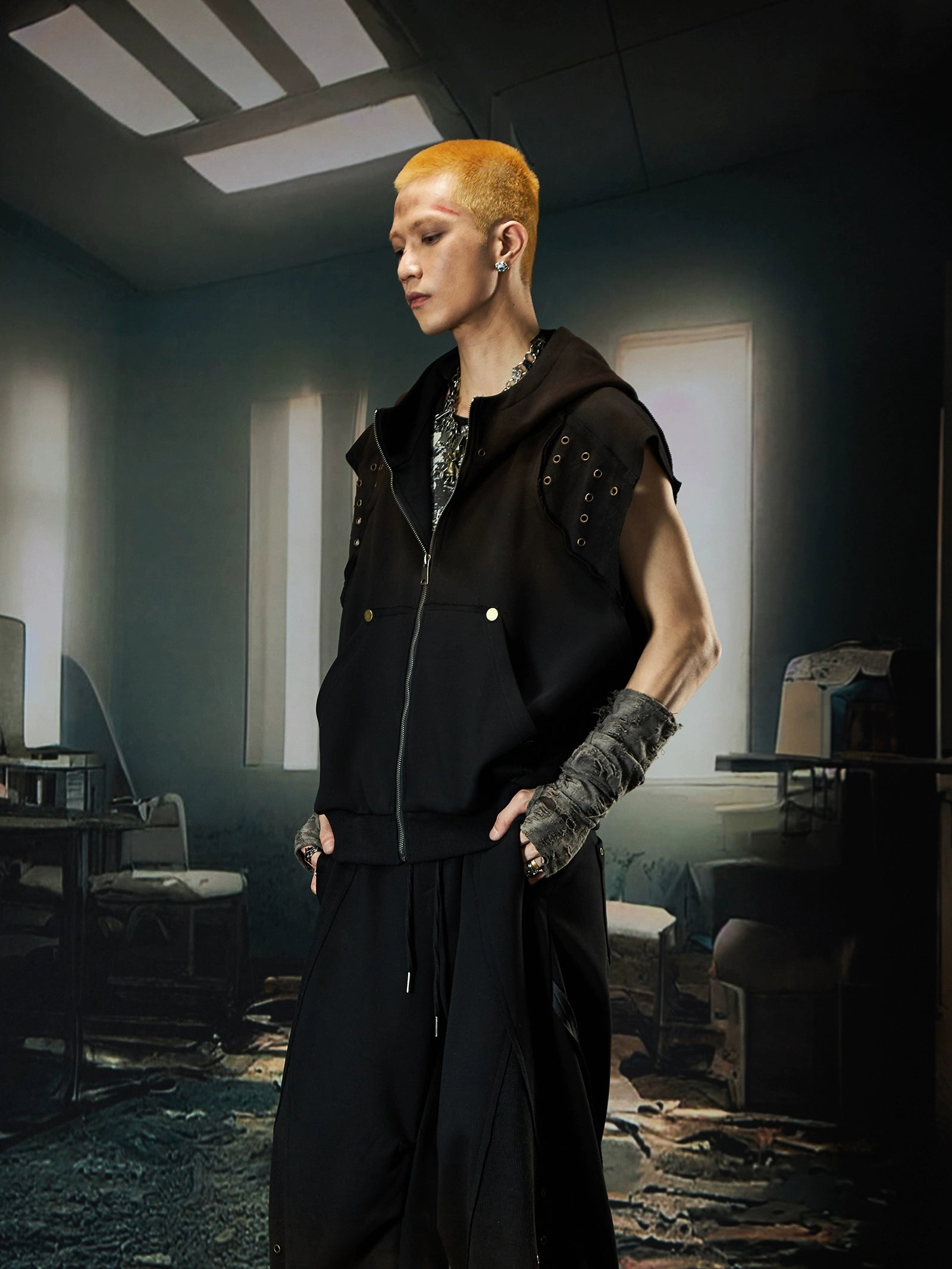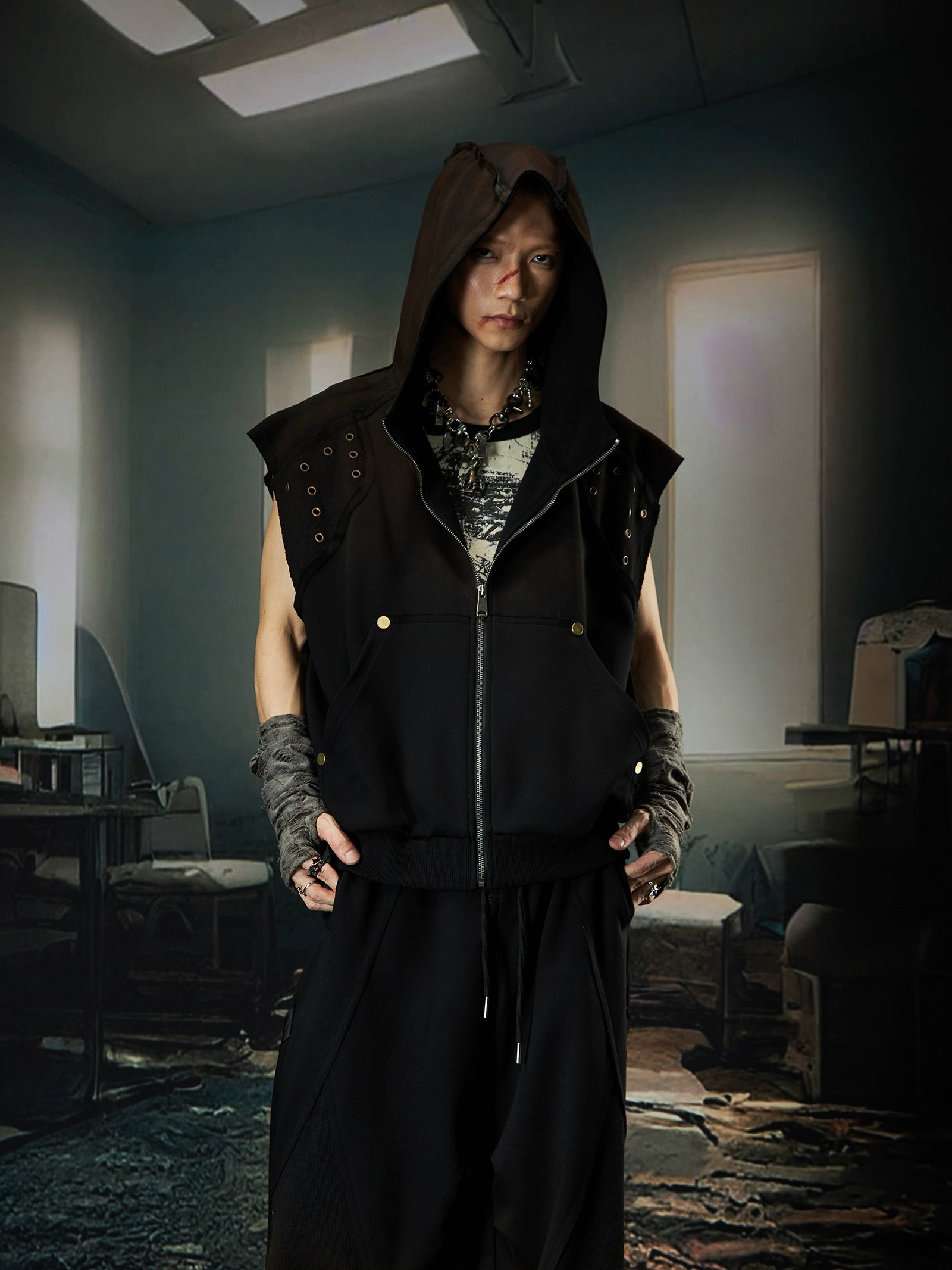 【25s Sep.】Deconstructed Cropped Hooded Zipper Vest