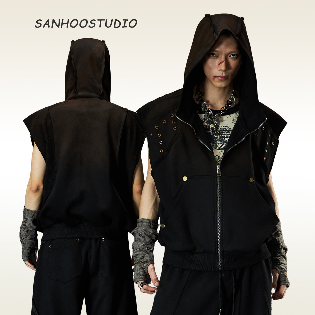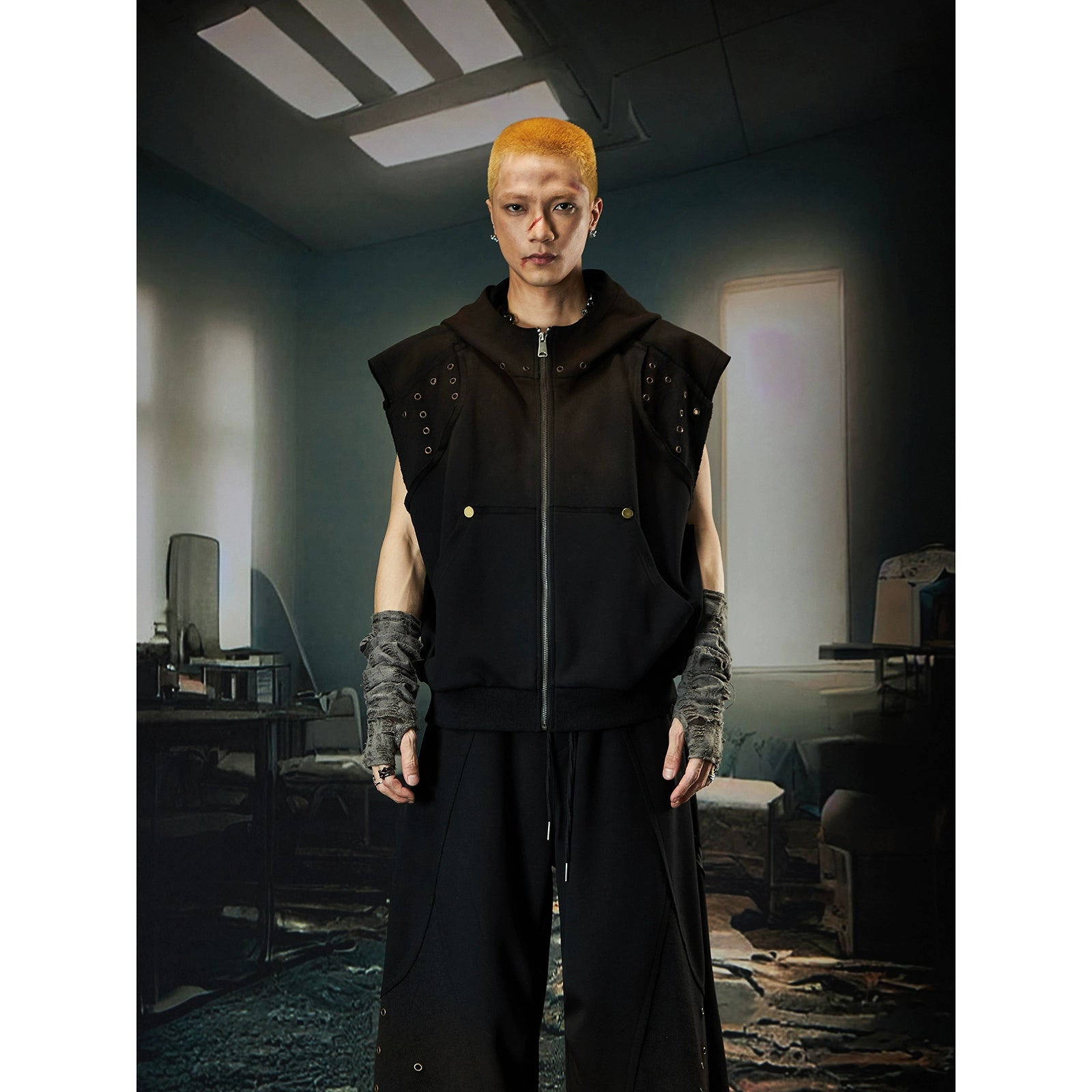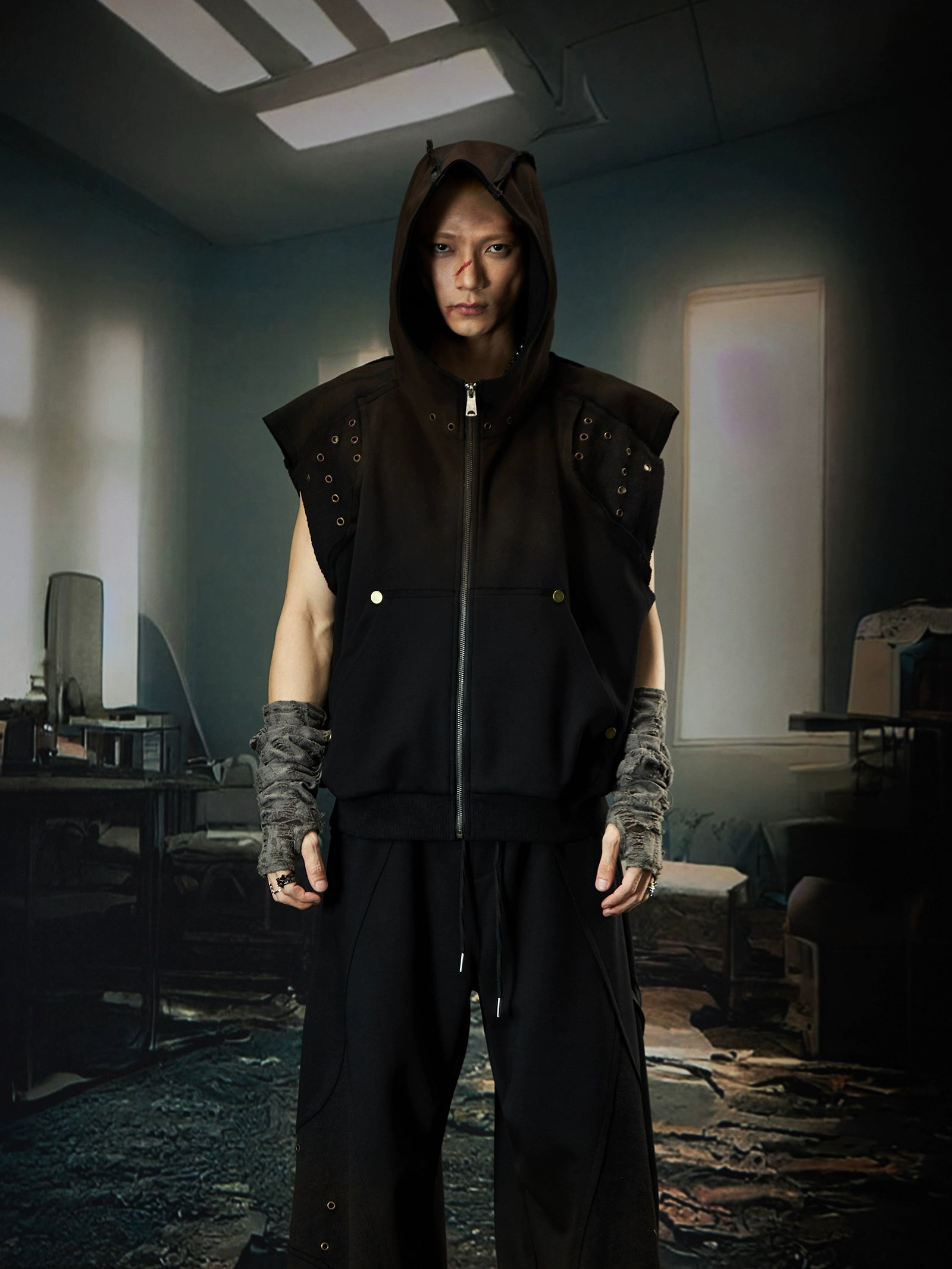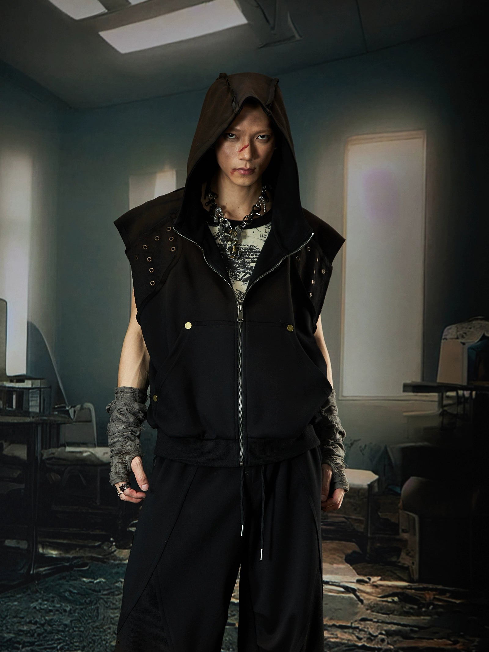 【25s Sep.】Deconstructed Cropped Hooded Zipper Vest