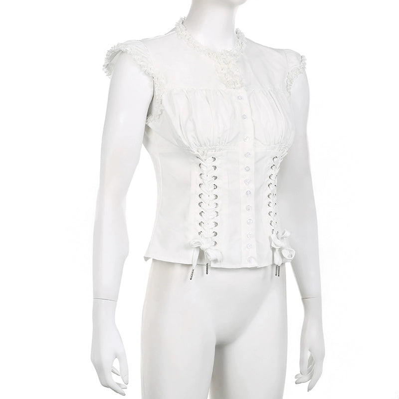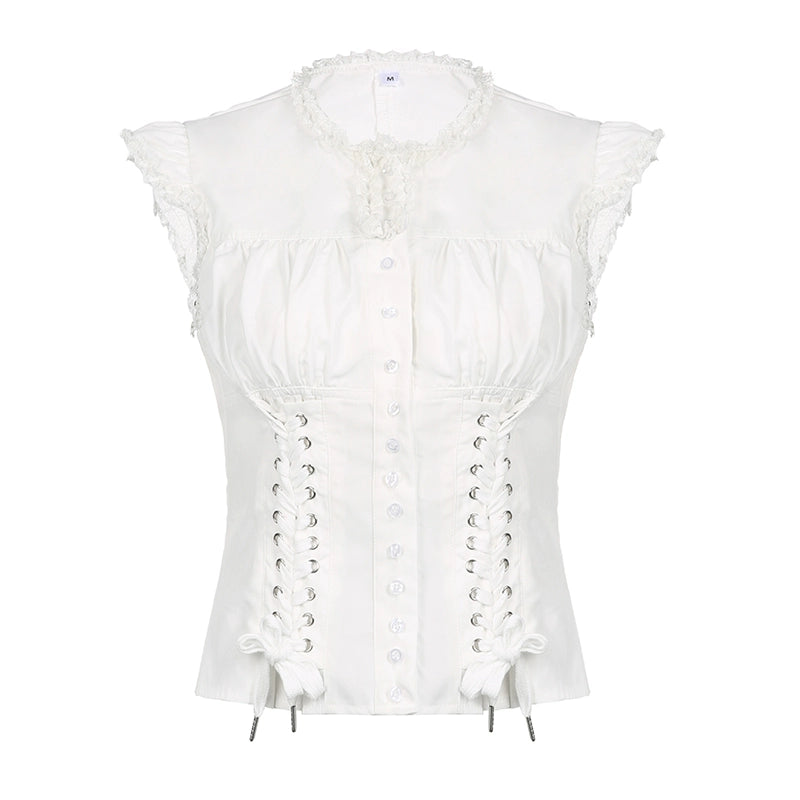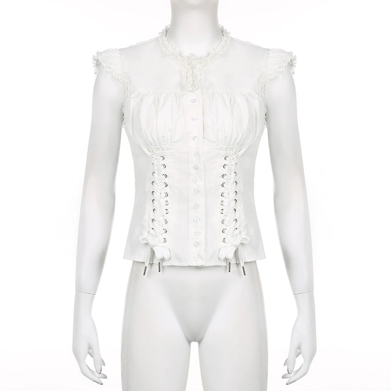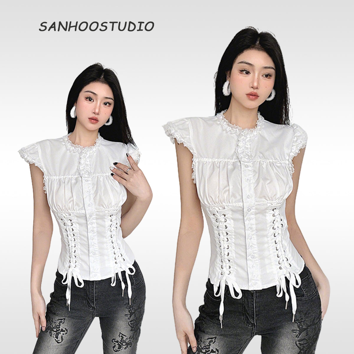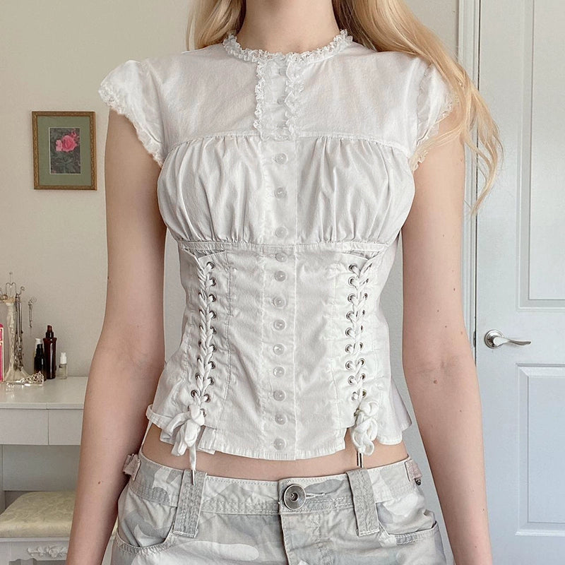 【25s Sep.】Heavy-Duty Lace-Up Slim Waist T-Shirt