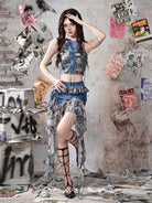 Butterfly PU Ruffle Mini Skirt