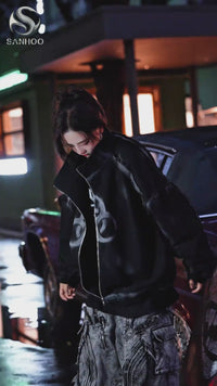 Graffiti Patchwork Hand-Dyed Sweatshirt Jacket