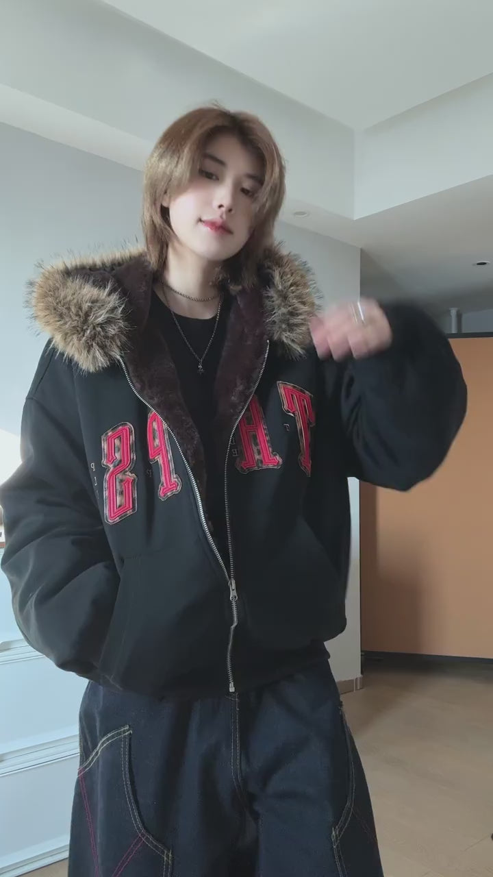 Leopard Patchwork Faux-Fur Colorblock Hooded Puffer Jacket