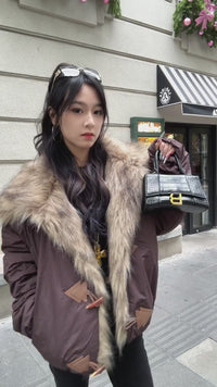 Luxe Wide-Lapels Fur-Trim Cropped Winter Puffer