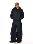 Oversized Wide-Leg Curved Denim Jeans with Retro Streetwear Fit