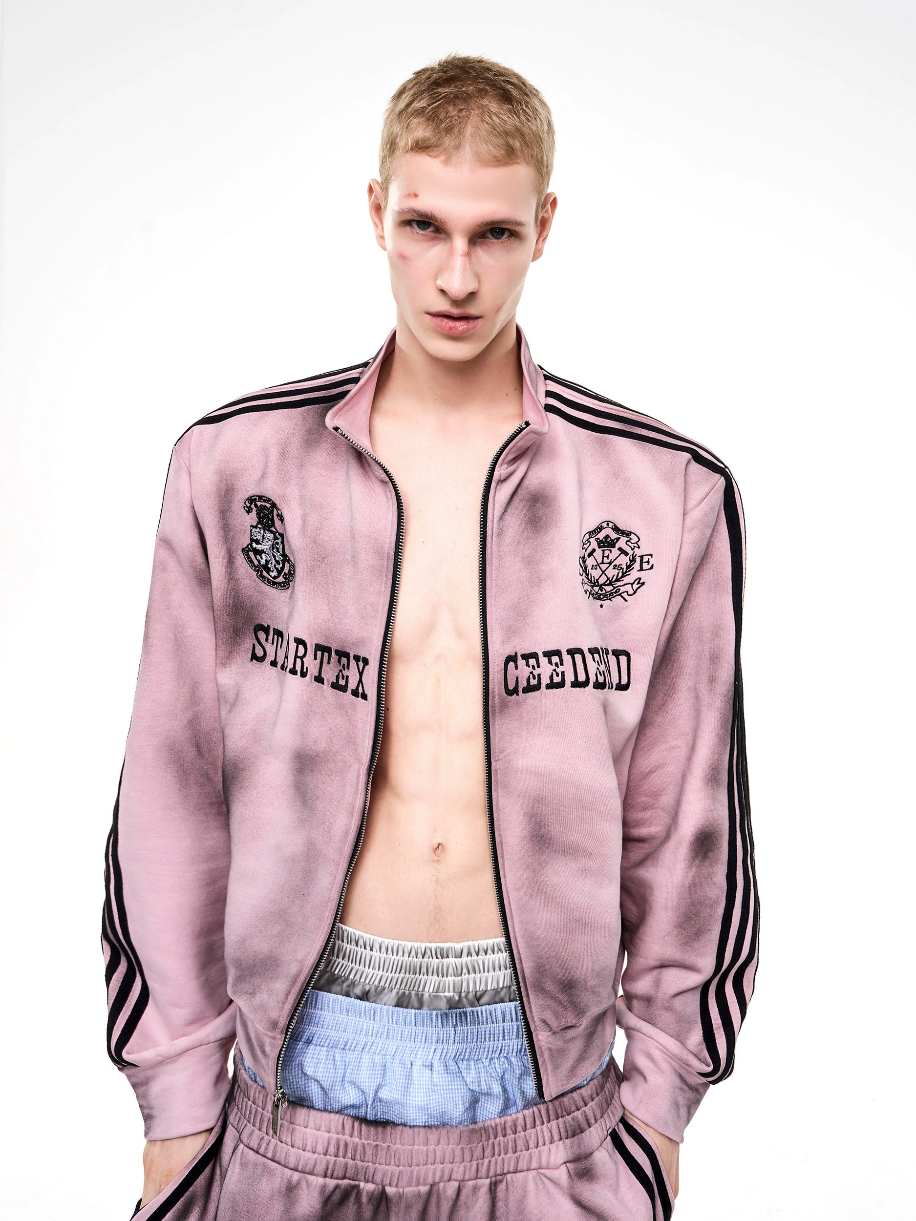 Pink Four-Stripes Washed Varsity Sweatshirt Set