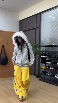 Retro Star Patch Contrast Wide-Leg Sweatpants