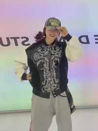 Snake-Pattern PU Deconstructed Varsity Jacket