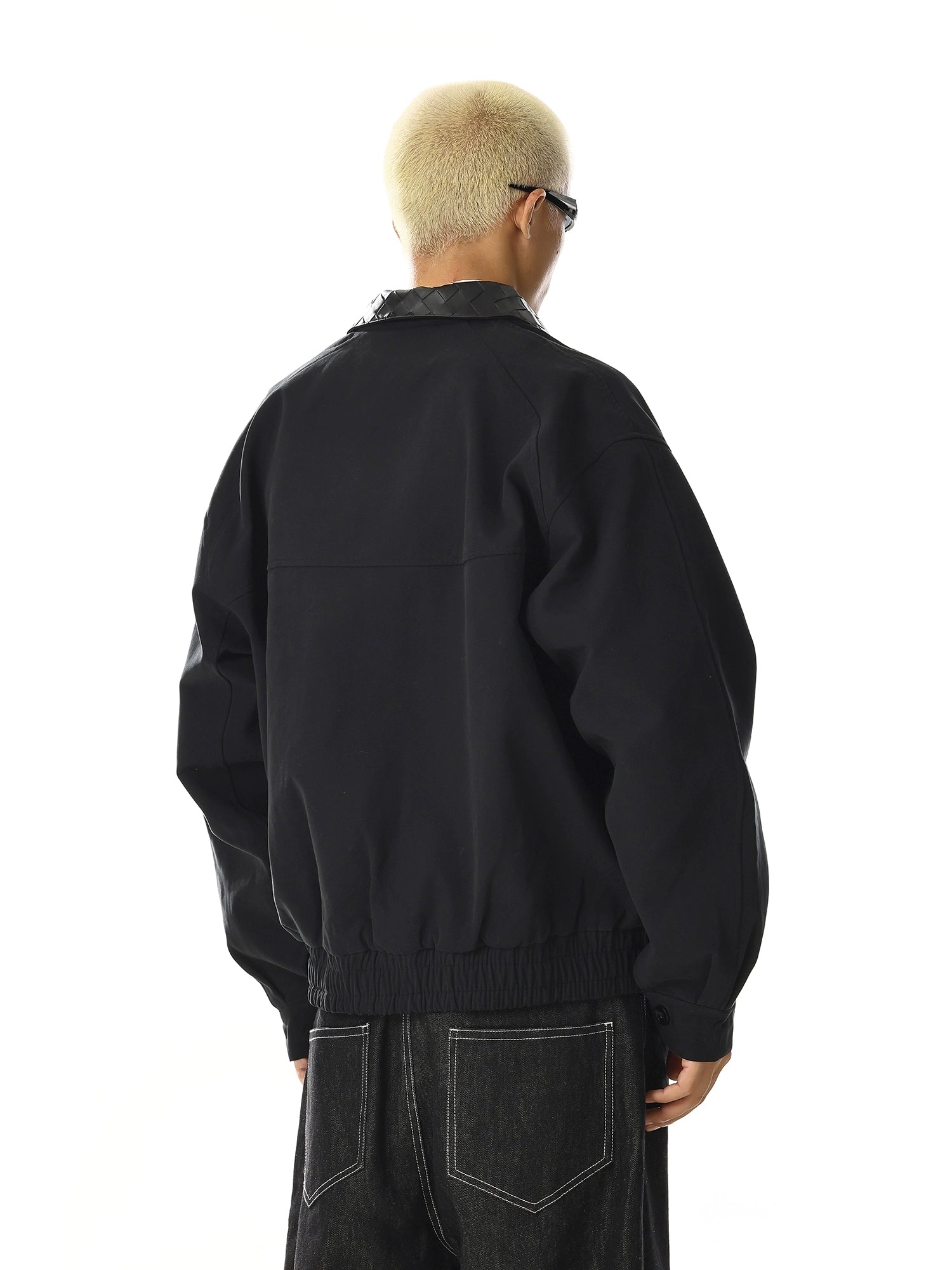 Vintage Leather Collar Jacket with Minimalist High Street Style